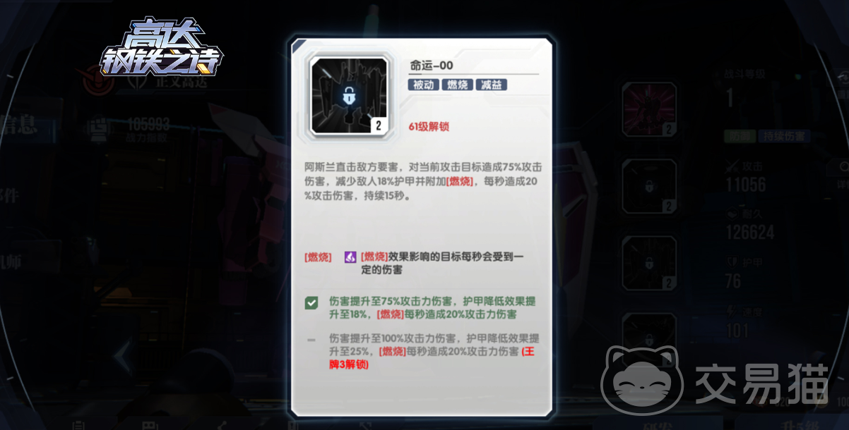有了对燃烧特攻,那么就需要找可以让敌人处于燃烧状态的机甲,以及如何最大化输出让自由高达可以打出击坠回能。最佳拍档无意识“正义高达”,其主动技能和被动技能都可以挂燃烧状态,可以说是完全契合了燃烧流的点火需求。