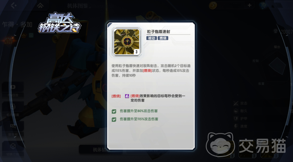 玩家可以在机甲图鉴里筛选有“燃烧”标签的机体,比如说力天使、天帝、百式、乍得、座天使等等,这几台机甲也能进一步强化这个燃烧流体系。当然,前期想要凑够完整一套燃烧流可能没有那么容易,但确保自由+正义这两个基础组合要有。
