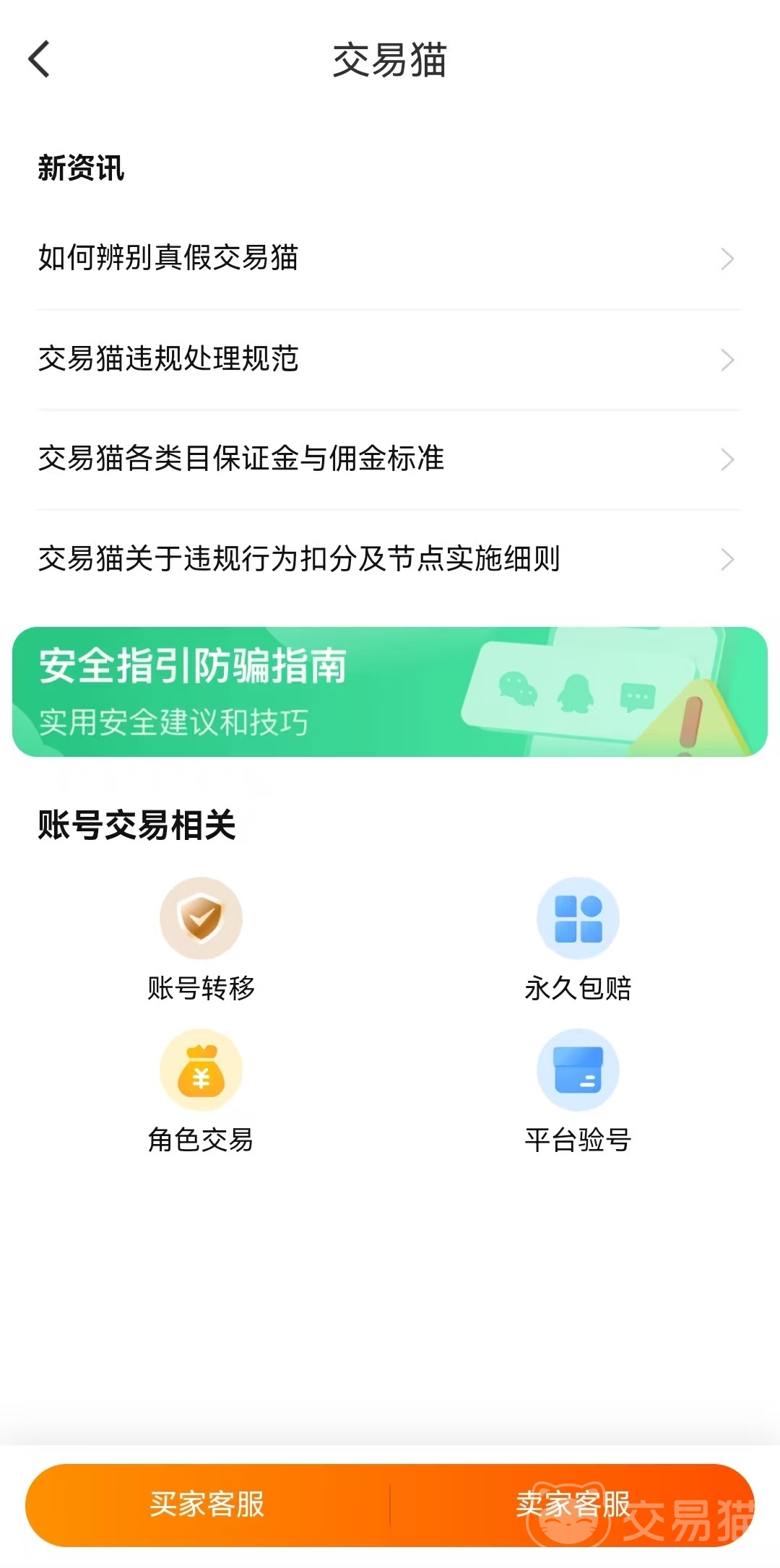 之所以要求只有保证金卖家才能进行这样类似商品的出售,就是为了保证安全,这一类型的卖家经受过更加严格认证,还需要缴纳保证金,这样能够保证商品的质量和服务都能达到较好的层次。如果在交易过程中大家遇到一些问题或者是有困惑的地方,能随时联系客服,交易猫客服保证很快就可以针对用户所提出的问题进行反馈。如果遇到账号到手之后有问题的情况,也需要随时联系客服,这样能及时止损。另外如果大家想要购买暴雪系其他游戏号,例如魔兽世界等,都可以采用同样方式在交易猫中直接去查找,在价格方面绝对可以做到非常优惠。