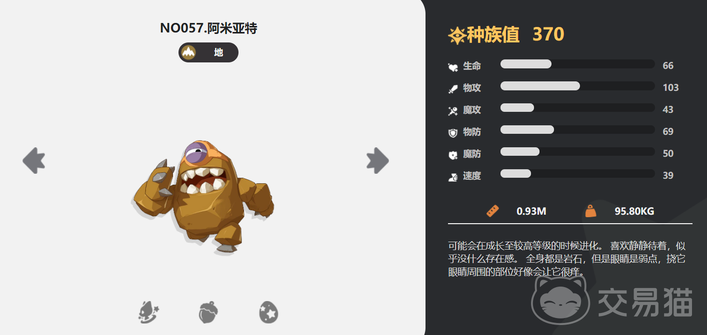 阿米亚特常出没于潘多诺格峡谷和拉布朗水晶矿场。在这些神秘之地,它总是静静地待着,仿佛与周围环境融为一体,乍一看似乎没什么存在感。但千万别小瞧了它,阿米亚特全身由坚硬的岩石构成,防御力惊人,不过它的眼睛却是弱点所在。
