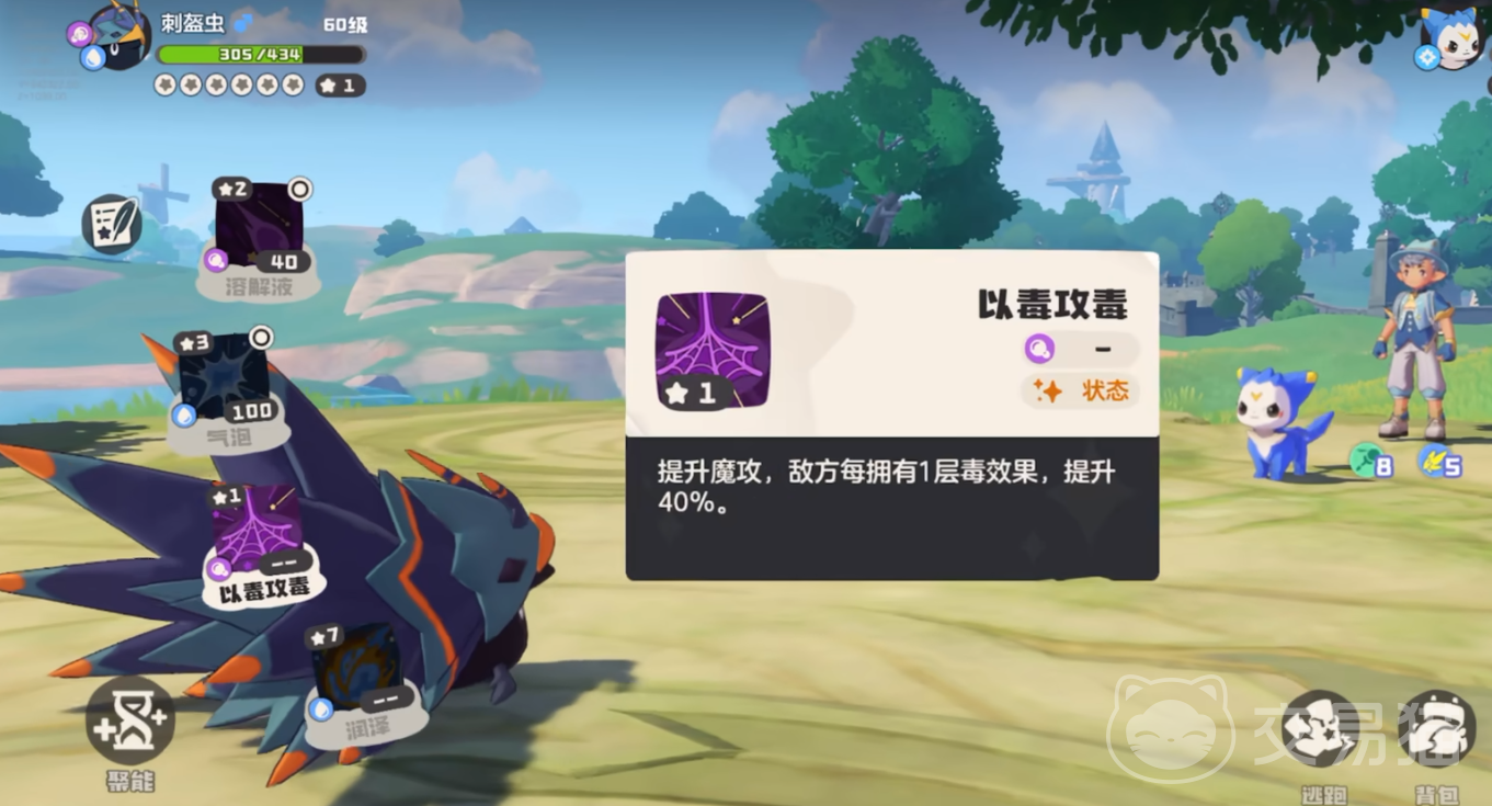 战斗的pp值改成了能量条,所有的技能都共用一个能量条,不同的效果能量消耗的数值不等,当消耗完能量之后,宠物将无法继续使用技能。通过休息一合来回复5点能量。同时携带某些技能也可以直接恢复能量,达到续航的效果。比如氧传输这一个技能,就可以一次恢复4点的能量。