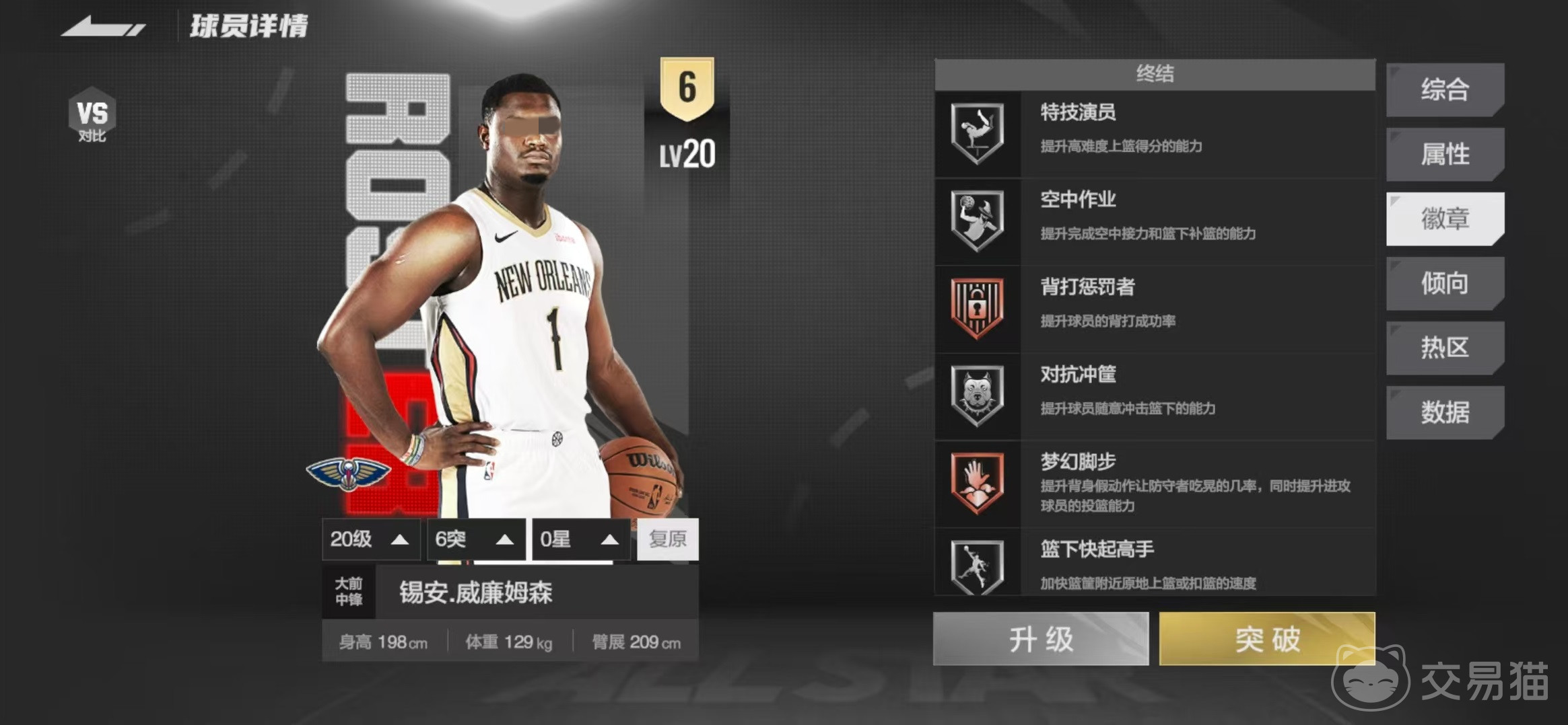 看到这里大家也就了解清楚美职篮全明星锡安怎么样了吧,另外这名角色还是拥有6枚铜属性徽章和13枚银属性徽章的角色,这也导致它综合评价分比较高,所以市场上价格也比较高一些。如果球队都需要这样的球员,一定要抓紧入手。