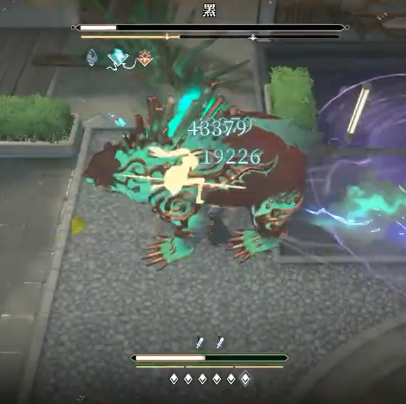 首先就是黑的基础攻击就是简单的爪机,会朝前方释放攻击,这个攻击范围很小,一般是比较容易躲避的,即便躲避不了也可以吃伤害,但是蓄力伤害就不要吃了,蓄力阶段boss的手掌会出现红色,然后朝着地面重击,这个阶段需要尽快闪避,一旦重击命中伤害是很高的。