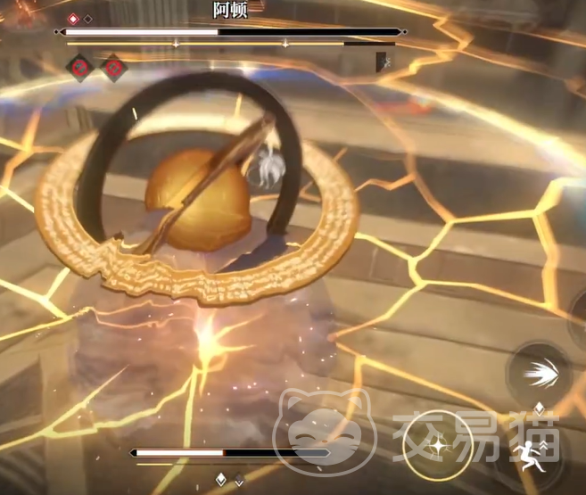 阿顿是第三章节的首个boss,其外形方面是一个星球仪器,这个boss的技能有超级大激光,再释放的过程中前面会出现大轮盘,然后开始朝着四周发射大激光,其范围还是很大的,但是这个技能有弱点,就是后方是安全,那么玩家就可以瞬移到后方使用普通攻击打boss的状态。