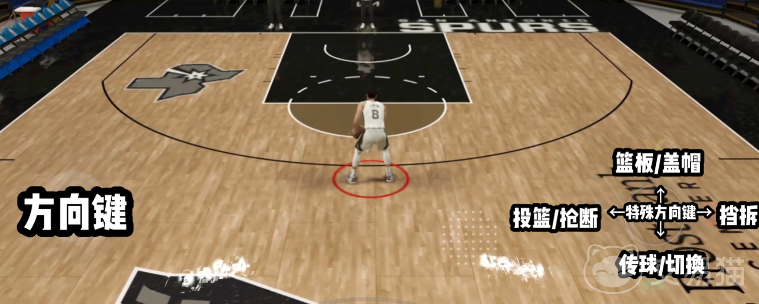 首先我们先熟悉一下键位,左边的摇杆就是控制我们移动的方向按键。通过上下左右就能迅速更改自己的位置,然后我们的传球按键就位于右边的最下方。这时候叫做传球以及切换键,如果我们手中有篮球的话,再按下去就可以传球。