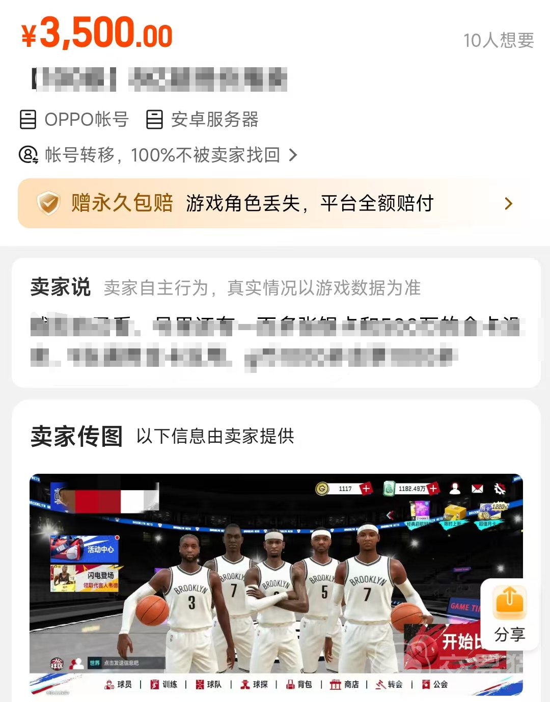 nba巅峰对决毕竟养成难度还是挺大的,所以高级球员的售价普遍都比较贵的,但还是符合市场需求的,有些玩家担心购买以后出现账号丢失以及无法登录的情况,那么后续就等于浪费了金钱还什么都没收获到的,那么平台是会赠送永久包赔的服务,以一定的价格进行返回,让玩家的权益得到保证哦!