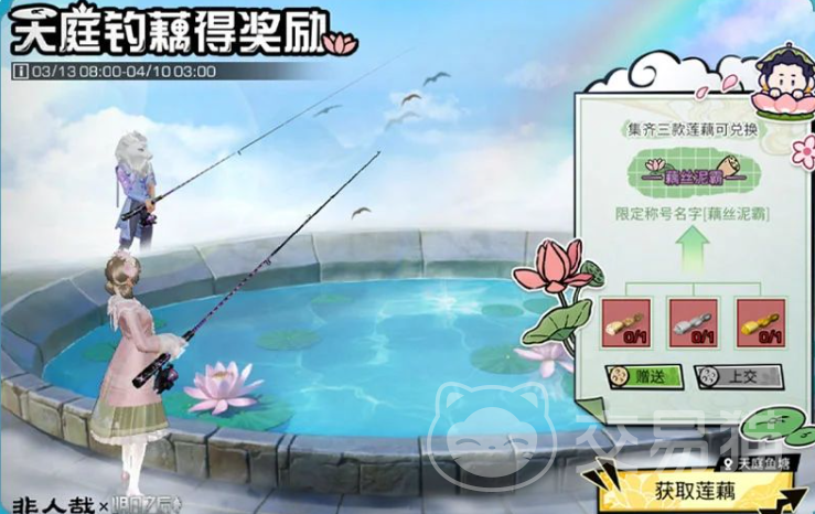 整体活动于3.13-4.9日之内均可参与。1、池塘钓藕活动,可以前往天庭中种着莲藕的水池进行钓鱼,有概率获得全新的食材莲藕,可能会钓上来金莲藕,银莲藕,或者是普通的莲藕,集齐三种品质的莲藕,还能兑换专属称号,还能烹饪莲藕料理。