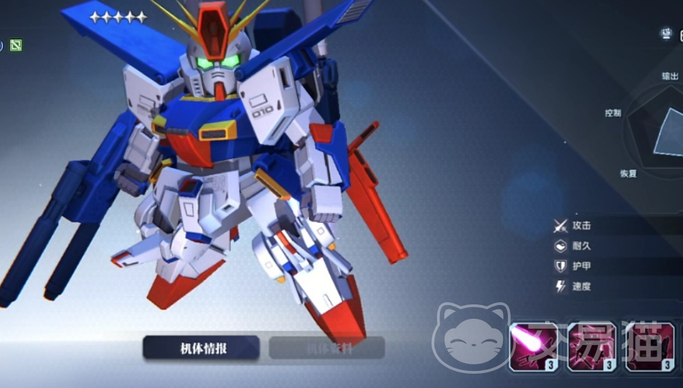 在战斗这方面也是比较轻松好上手的,玩家们在参与不同的战斗时可以携带不同数量的高达进入战斗。由于游戏内的高达,分别都有着不同的特性与战斗定位,因此当小伙伴们携带不同特性的高达上场时,它们可以被激发潜力,并且提升攻击力和耐久度,如果小伙伴们携带了5名高达上场,那么它们的各项属性最高可以提升至20%,因此小伙伴们在面对一些比较后期的战斗时,最好是多携带一些高达上场。