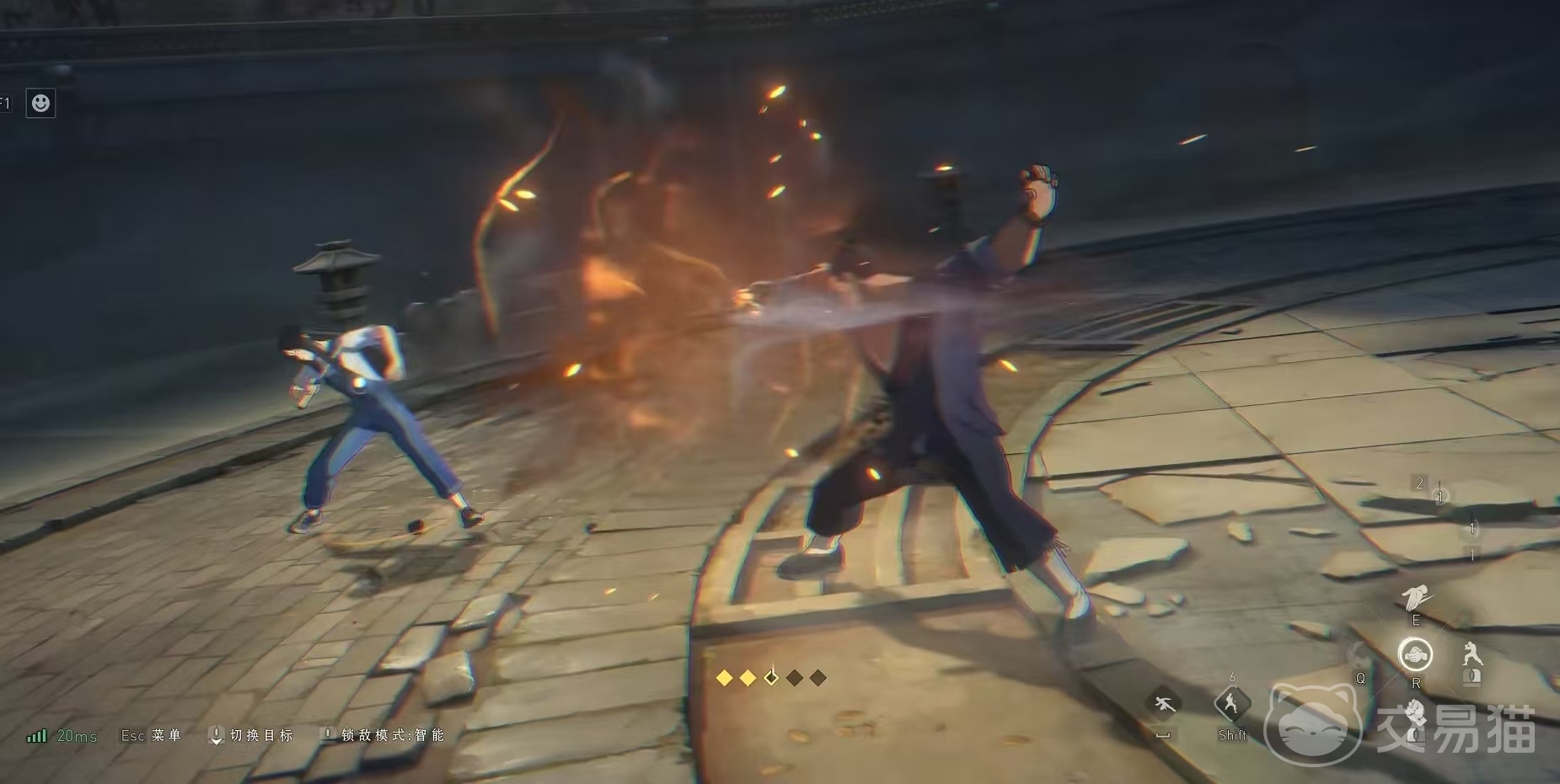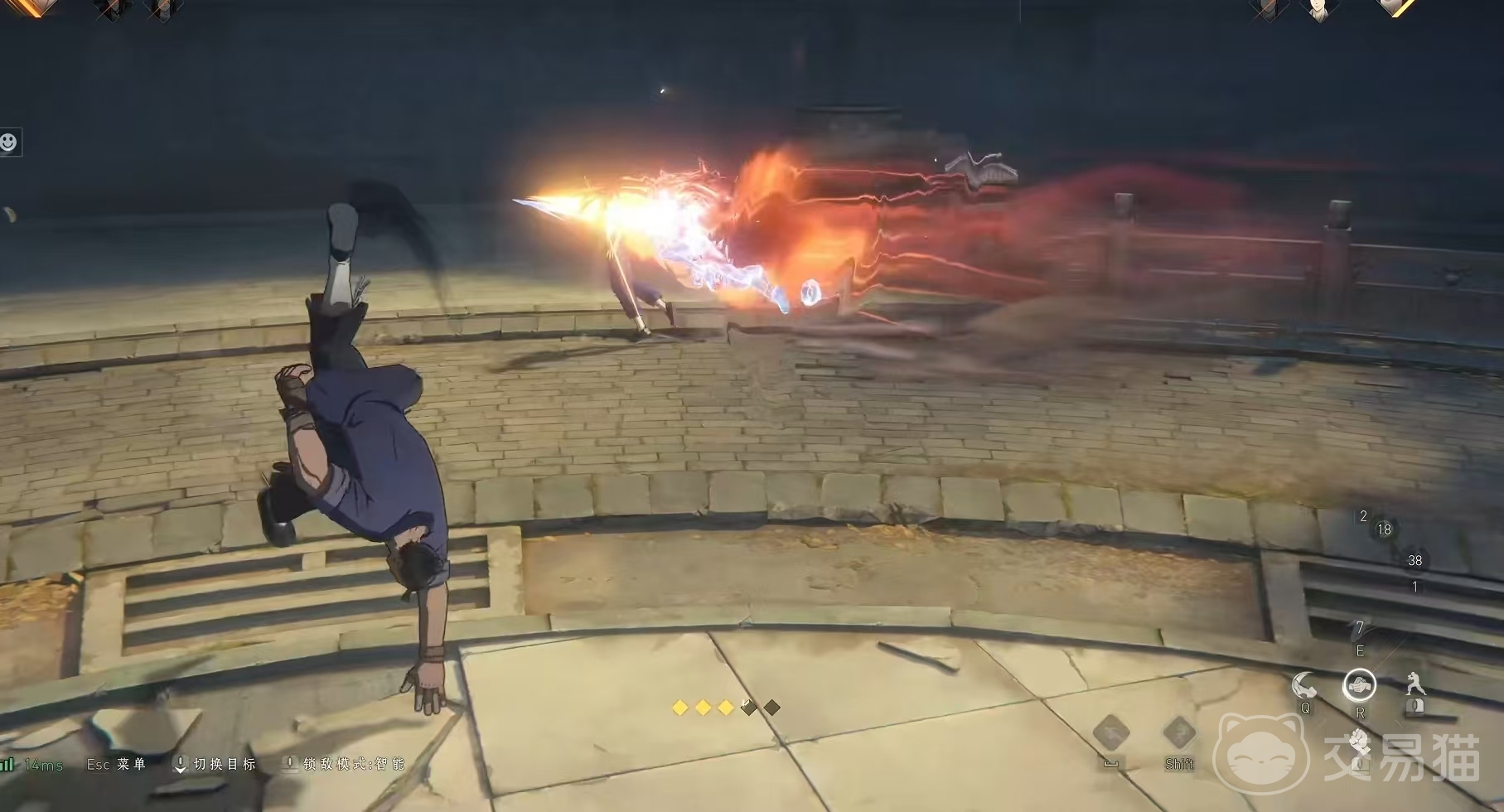 二技能穿云拍岸,能够将金光凝练出双手将敌人抓取,这一步要使用控鹤擒龙使用出来。三技能就是绝招,向敌人挥出重拳造成大量附加伤害。知道荣山技能的效果和力量,我们就可以使用连招了。通用连招是伤害技能+绝技,具体是打出普攻3a取消不要接4a再继续3a,后接一个二技能这里要取消后摇接4a击飞。