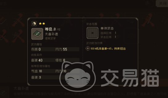 上面就是,大江湖之苍龙与白鸟音律武功介绍,想学习这类音律武功,那就需要让各个数值都先达到要求才可以,岳麓书院还可以通过完成剧情,获得太音补遗,这是可以快速提升玩家音律的一个秘籍,新手在前期可以多留意这个区域的相关任务,借助密集的辅助,能让玩家的数值快速达到指定的要求,这样才能顺利修炼铁琴功,游戏里的功法多种多样,喜欢音律武功的可以按照上面的方式获取各项秘籍。