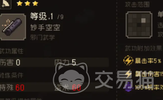 这样再把这个情况告知给鬼手之后,他就会传授给玩家妙手空空这个武学,通过这个武学在游戏里偷窃武功秘籍,获得大量的游戏资源,想要掌握妙手空空,首先玩家的偷盗等级需要比较高,另外角色还需要尽力提升自己的悟性,只有这样才能灵活使用妙手空空,只不过使用这个武学是有一定弊端的,玩家需要时刻让自己的道德值保持在五以下,等到可以灵活掌握之后,再通过选择增加道德值的选项,恢复自己的道德值。