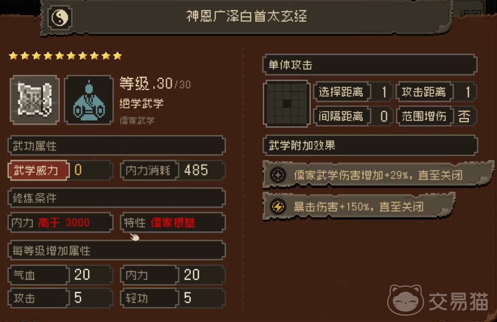 首先就是太玄经,这款内功极为特殊,在游戏中的修炼方式独特,但实力非常强劲,无需复杂的口诀,只需领悟刻在石壁上的神秘图案,修炼成功后,太玄经能让角色的各项属性得到全面且大幅度的提升,其提升幅度在游戏众多内功中名列前茅,角色施展的武学招式会变得刚猛无比,威力惊人,同时还能提升角色的战斗领悟能力,使角色在战斗中更容易触发暴击和连击效果。
