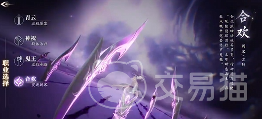 合欢职业在游戏中属于突进刺客类职业,操作难度是所有职业中最难的一个,但是对应来说,它的爆发和近战能力也是最强的。该职业的技能特效非常的绚丽,上限高下限低,不过手残党玩家不太推荐。