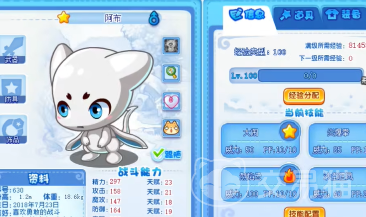 阿布这个角色外表是非常萌宠可爱的,并且还拥有隐藏的强大实力,玩家们进行补助之后就可以先了解一下他的基础技能,作为初始的获悉物理技能,在攻击对手的时候可以来释放燃烧的效果,特别适合面对草或者冰属性宠物,可以来发挥高额的伤害,并且还可以在后续的回合中持续性的造成伤害,之后就是龙之舞这个龙系的变化技能,可以来提升宠物自身的攻击和速度的属性,特别的实用。
