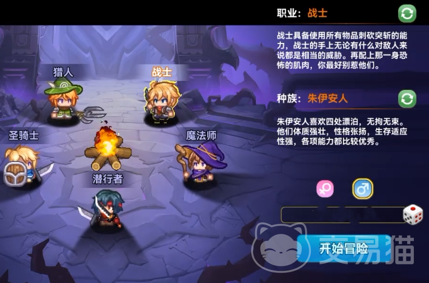 在进入游戏之后玩家们可以在5个职业中进行选择,因为是游戏前期,可能选择输出能力强的角色会好点,但是如果操作不流畅的话可以选择远程攻击的法师,游戏后期是支持专职的。