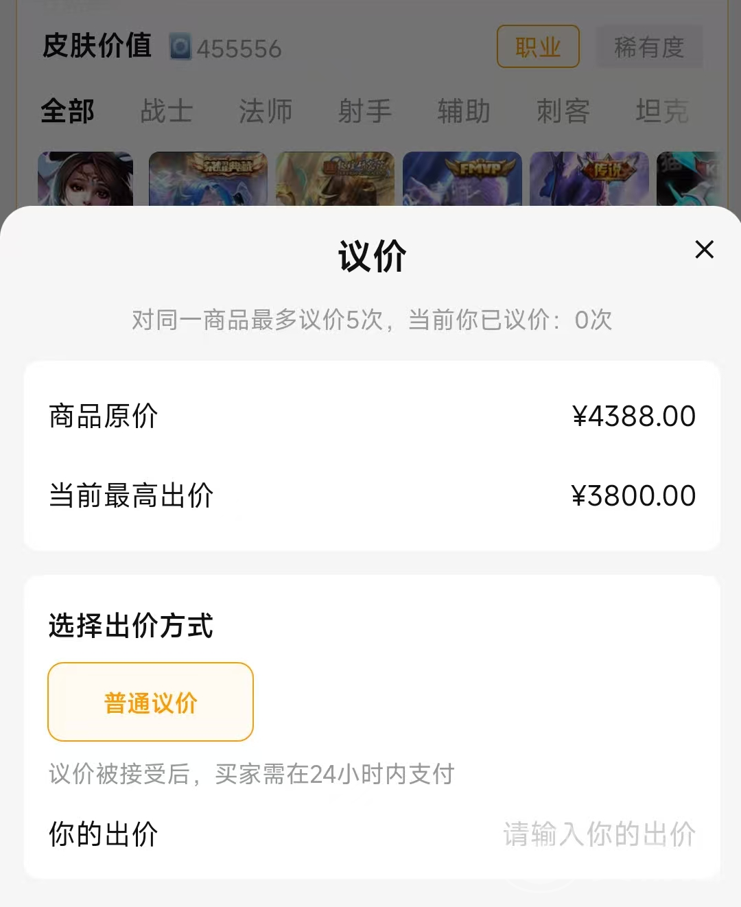 有些玩家寻找了好久找到了自己喜欢的账号,并且账号内所拥有的皮肤都是挺稀有的,但是价格方面还是有些贵,那么就可以点开界面的议价功能,设置一个合适的价格,只有卖家同意,那么就可以以较低的价格出售给玩家,想要更方便的话,可以直接从价格筛选功能中选出对应的区间进行选择也是ok的。