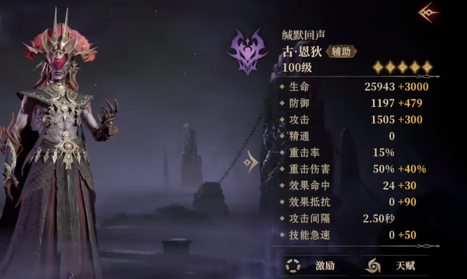 古恩狄,是一个对于玩家来说非常重要的辅助类角色,人物也能利用魅惑去攻击对方,在攻击的时候,如果击中了生命值低于50%的角色,那就有一半的概率给对方施加魅惑状态,除了魅惑之外还会有减疗的状态,这就相当于无法及时让对方治疗,团队的其他成员,就可以在这个时候快速进行攻击,有机会通过这种方式率先把对方的这个角色刷下场。
