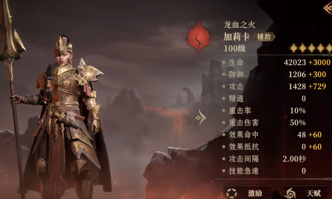 在游戏里玩家可以选择的角色很多,这些角色还有不同的派系,代表角色在整体装束,包括战斗技能上都是会有一定区别的,首先最推荐的就是火系角色,这一类角色战斗能力都会比较优秀一些,对战的时候,角色都能打出较高的爆发伤害,在火系角色里最推荐的就是加莉卡,这个角色的生命值非常高,防御值和攻击值也是比较优秀的,角色可以作为一个辅助类角色,也可以借助较高的生命值成为队伍里的肉盾角色,帮助整个队伍抵抗伤害。