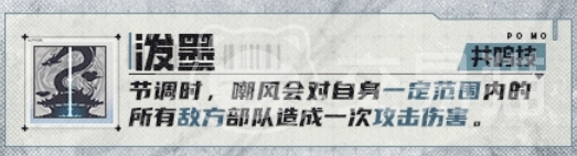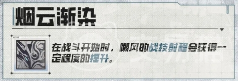 第二个技能是烟云渐染,这个技能在战斗开始时就会触发,当战斗的号角吹响,嘲风便会启动烟云渐染技能,在这个技能的作用下,陶风的战技射程会急获得一定程度的提升,这一提升使得嘲风能够在更远的距离上对敌人发起攻击,进一步扩大了它的攻击范围,让它在战斗中能够更好地发挥远程输出的优势,也是比较具有共鸣形态特色的一个效果。