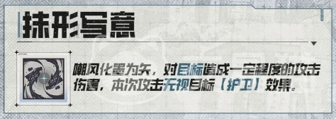 再来说说嘲风的技能,第一个技能是抹形写意,当嘲风施展此技能时,它会化墨为矢,将自身的神力注入到墨汁之中,这些墨汁瞬间化作一支支锋利的箭矢,以极快的速度射向目标,这些箭矢蕴含着强大的攻击力,能够对目标造成一定程度的攻击伤害,而且本次攻击还有一个极其厉害的效果,那就是无视目标的护卫效果,这意味着无论目标有多少防御手段,都无法阻挡嘲风这凌厉的一击。