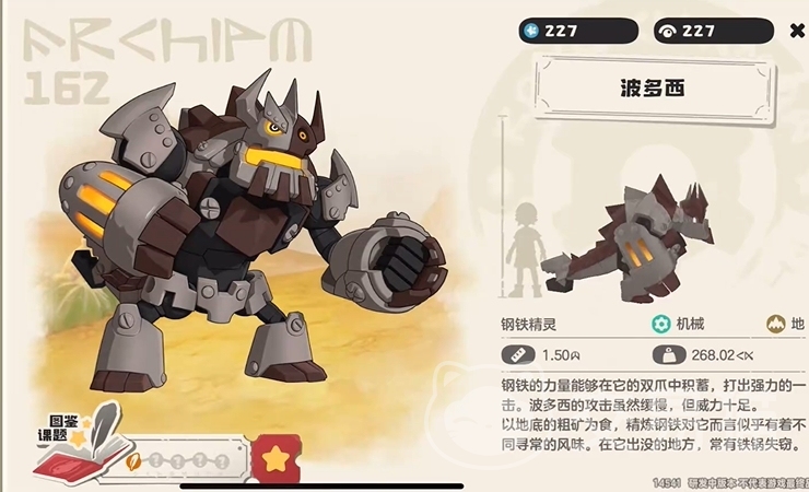 波多西种族值中物防和魔防表现突出,这使其具备强大的防御能力,能在战斗中承受大量伤害,同时它的技能机制巧妙地将防御与输出相结合,波多西入场时本系技能威力提升10%,这意味着在团队中有其他防御型宠物配合时,波多西的输出能力会随着战斗进程逐步增强,非常适合持久战与消耗战,以稳固的防御为基础,慢慢积累输出优势,部分技能拥有成长机制,迫近攻击技能每次释放后威力会增加25,在面对耐力较强、需要长时间战斗才能击败的对手时,该技能可通过多次释放不断提升伤害,逐步瓦解对手防线,让波多西在战斗后期能打出高额伤害,成为战局扭转的关键因素。