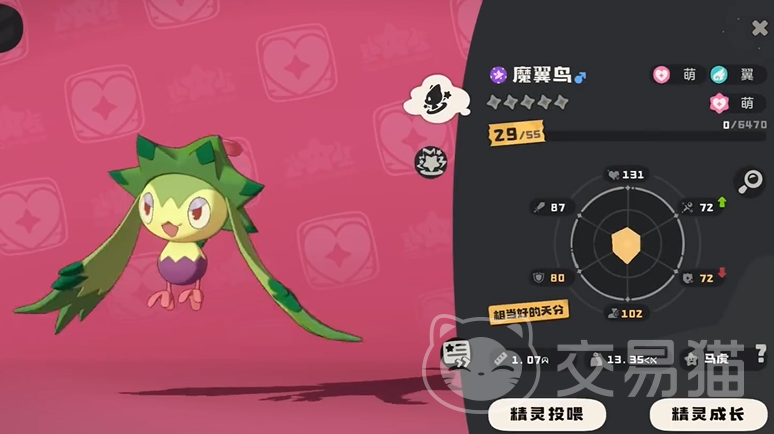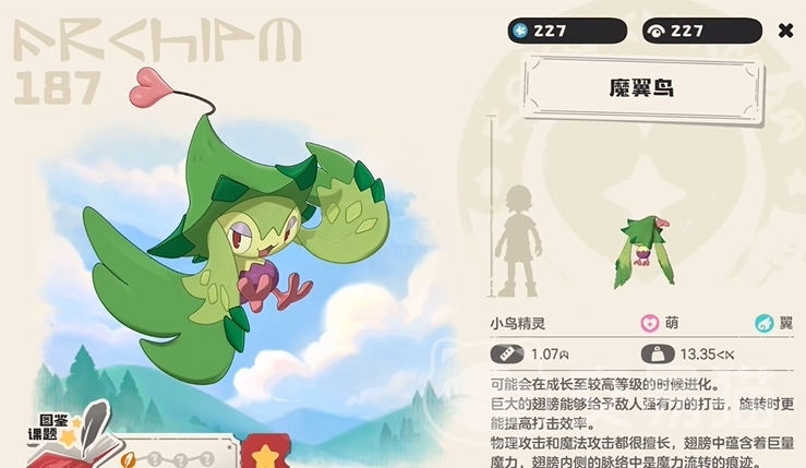 魔翼鸟是洛克王国中独具特色的飞行系宠物,初级形态是绿翼鸟,进化为魔翼鸟后各项数值提升,这使得魔翼鸟在战斗中具备一定的生存能力,速度较快能率先出手,攻击和魔攻数值也保证了它拥有不错的输出潜力,其外观造型独特拥有一对巨大且酷炫的翅膀,在战斗中展翅攻击的姿态十分帅气,给玩家带来视觉上的独特体验,在战斗定位上魔翼鸟既可以作为输出主力,凭借技能打出可观伤害,也能利用自身速度优势干扰敌方节奏,打乱对方战术布局。