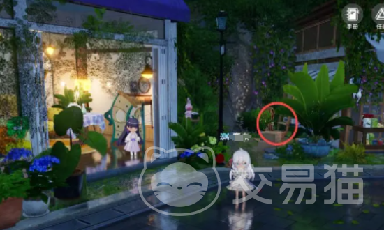 从咖啡店原路返回,就能看到在台阶下会有一个服装店,服装店外面会有很多花朵,靠近之后可以直接把这些花朵收集起来,在花朵的斜后方会有一条窄小的小道,在这条小道旁边会有一个蓝色的箱子,箱子对面有一盆水仙花,可以直接把花朵采集下来,在花朵附近还会有一个石雕,靠近之后就可以把石头收集起来。