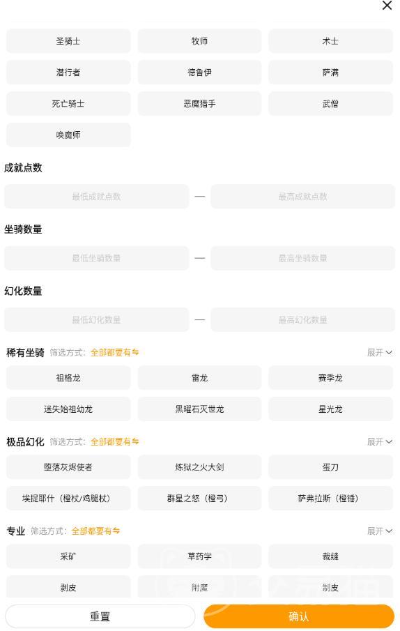 与其他同类产品相比,交易猫的检索系统更加高效,为了便于大家搜索,应用中还引入了筛选功能,支持按装等、成就点、坐骑数量等20余项参数进行精准筛选,帮助玩家快速匹配心仪账号。