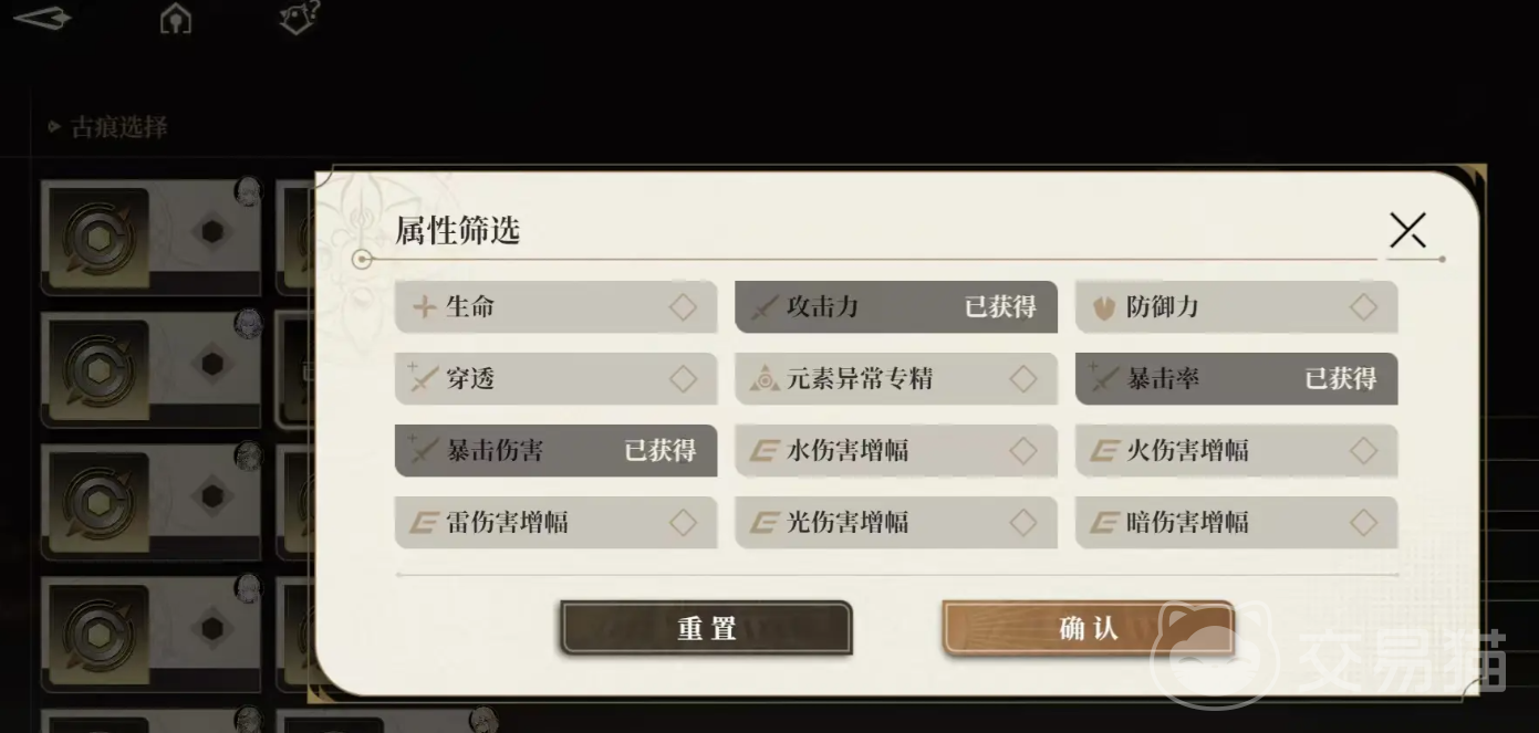 另外如果大家对手上获得古痕的属性词条不满意,手上的主要输出角色用不上这些属性,想要将某一个属性加成变成自己更加想要的,可以利用道具重刻刀片来为古痕进行重塑。