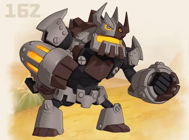 这个队伍之中的压轴精灵,它是地,草和机械三种属性。这个精灵自身的血量有着额外的加成,再加上它的双防很高,是非常耐打的坦克模版。但是相对的它的输出能力要弱上不少。波多西的特性是己方的队友每使用一次防御类型的技能,那么它入场的时候本系的技能威力就会提升10%。这也是它为何需要最后上场的原因。它的技能携带可以选择遁地,岩土暴击,钢钻和械斗。