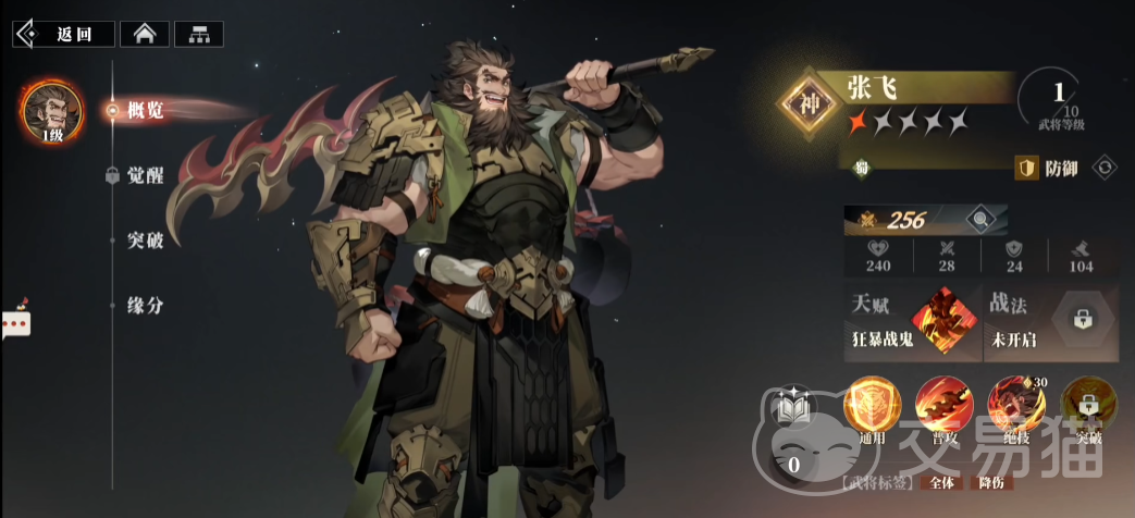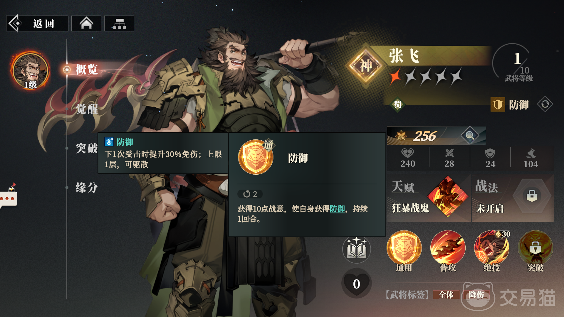 三国志幻想大陆2枭之歌张飞的技能情况是不是都搞清楚了,张飞作为一个防御型的武将,不仅拥有相当可观的降低伤害的能力,还能对全体敌人攻击,攻击力也还可以,以防御为主,还能辅助输出,也是十分不错的武将人选。