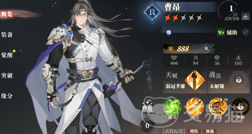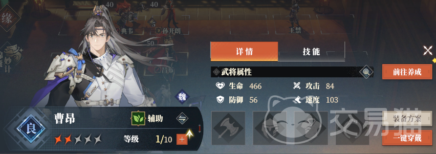 三幻2中的曹昂不仅长得英俊帅气,更是队伍的好帮手,游戏中他定位辅助,那么具体三国志幻想大陆2枭之歌曹昂怎么样呢?下面便为大家分享三幻2曹昂技能强度详解,进一步了解这个武将。技能天赋是一个武将的核心,优秀的机制加上高额的数值,武将实力自然很强。