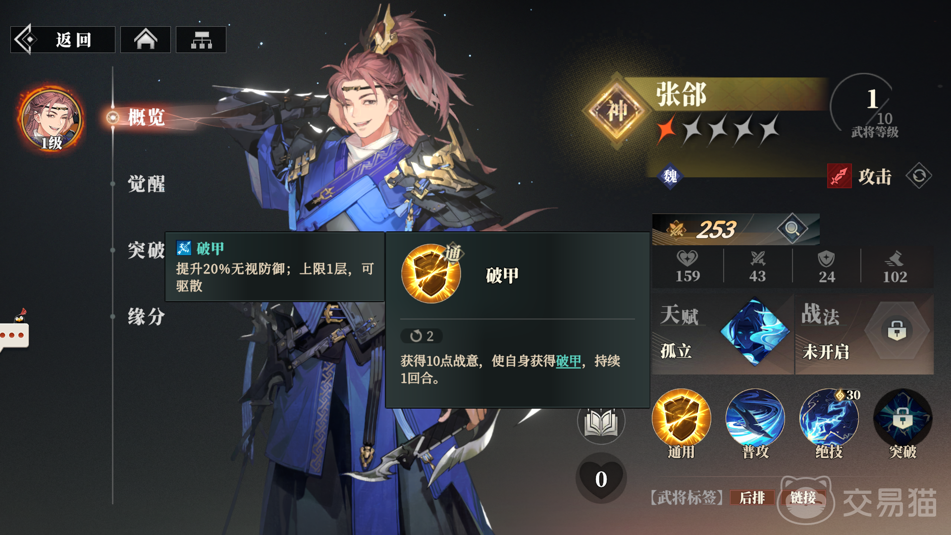三国志幻想大陆2枭之歌张郃怎么样 三幻2张郃技能强度详解