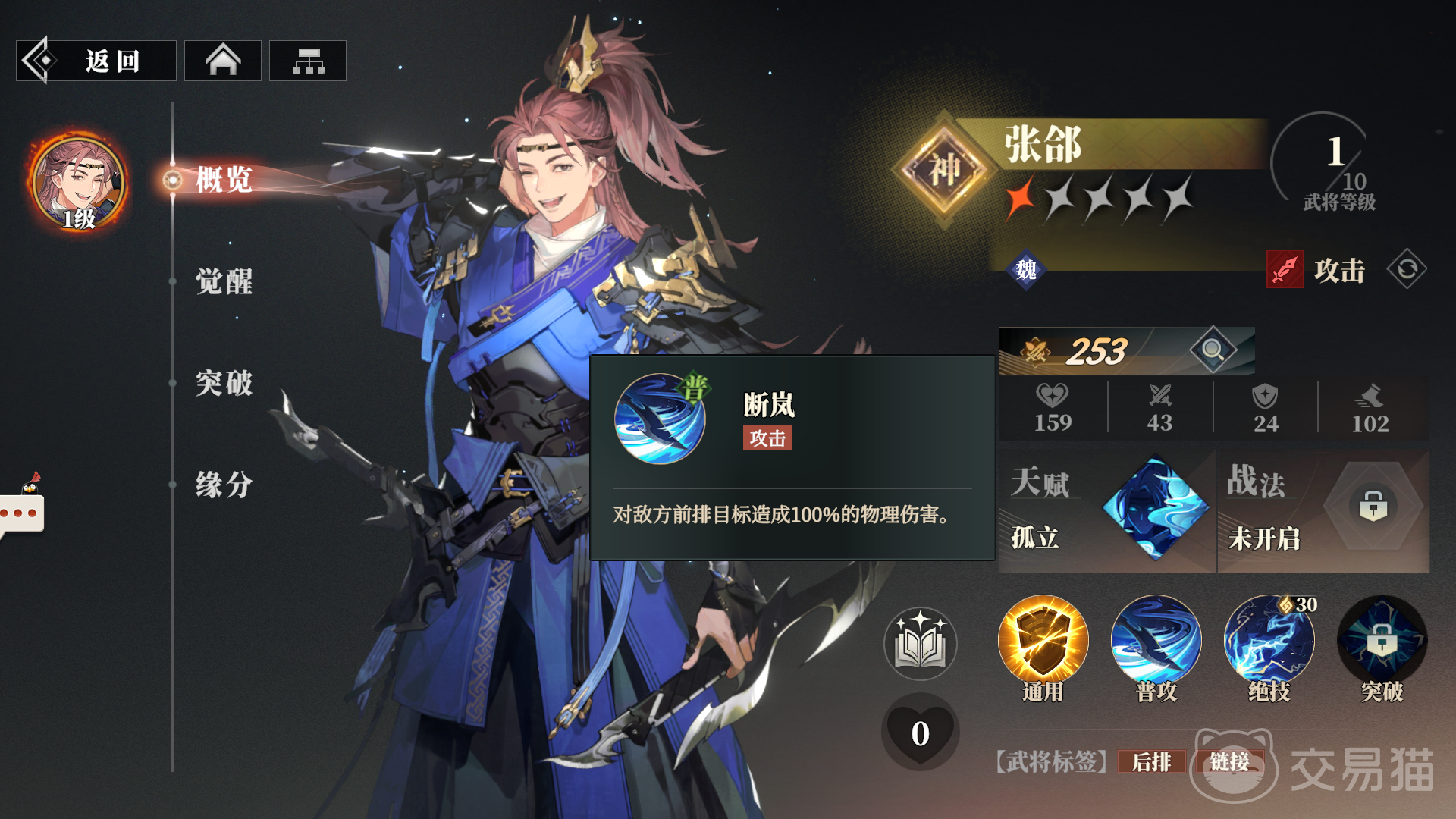 三国志幻想大陆2枭之歌张郃怎么样?张郃是一名红发马尾的“神”级男性角色,外表比较吸睛,吸引了很多玩家伙伴的目光,当然大家也是同样好奇他的能力情况,这个神级武将强不强呢,下面就盘点了他的技能详情,想要知道他的能力如何,就一起从他的技能效果来解析吧。