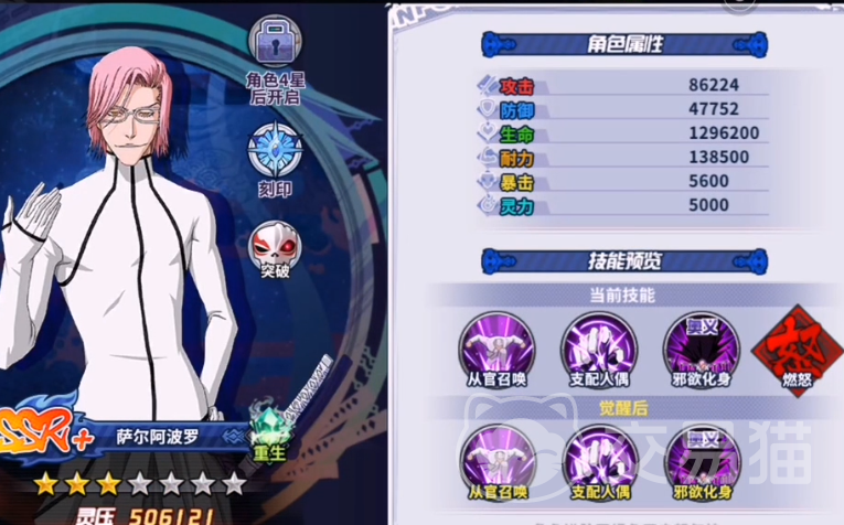 境界刀鸣是根据死神改编过来的游戏,所以在游戏里,会把各个知名角色的外观、技能都做出一个还原,能让更多喜欢死神的玩家,都能通过游戏再次操控这些角色,感受激烈的战斗,下面会带来境界刀鸣萨尔阿波罗技能,这是一个在原作中就非常受欢迎的英雄,想在境界当明这个游戏里也使用这个角色的话,那就可以了解一下具体的技能设定。