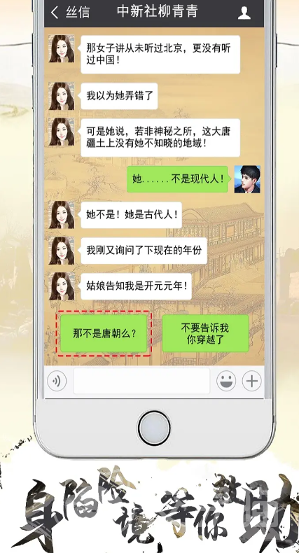 《寻梦丝路》是一款非常经典的文字冒险类游戏,在游戏当中,玩家需要使用虚拟的聊天窗口,和主角进行互动,在互动的期间,玩家可以通过选项帮助主角做决定,游戏当中的主角偶然穿越到了盛唐时期,在上元灯会期间,和男主角相识,而在这之后,由于造化弄人,两人出现了分离,而且是玩家需要协助主角前往到罗马,寻觅真爱。