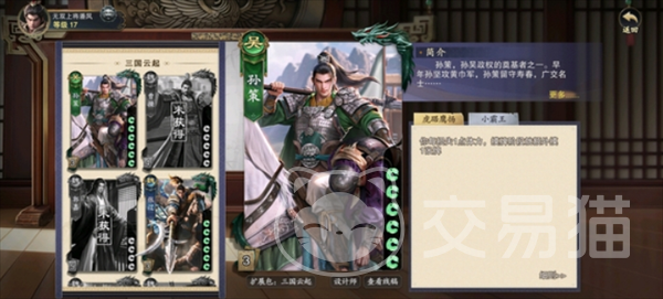 孙权在代号杀中属于辅助类型的卡牌,他的主要能力就是可以制衡整个局势,一技能亲骑射湖和二技能地利配合使用,可以将自身强大的辅助能力给展现出来。