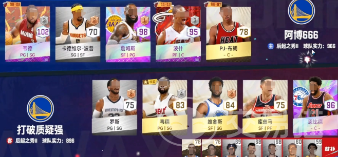 在第3分栏可以清楚的看到详细的信息,包括助攻还有得分以及盖帽等等。在这个排位赛的模式中,主要是按照nba的规则来控制整个球队。玩家一开始进入游戏时,初始就会有一个白板球员,通过抽奖方式得到的球员就可以和这一个球员比较。在能力值上面大概会有8点左右的差距,对新手而言,一开始根本就没有办法组建自己想要的阵容,那么白板球员其实还是比较重要的。
