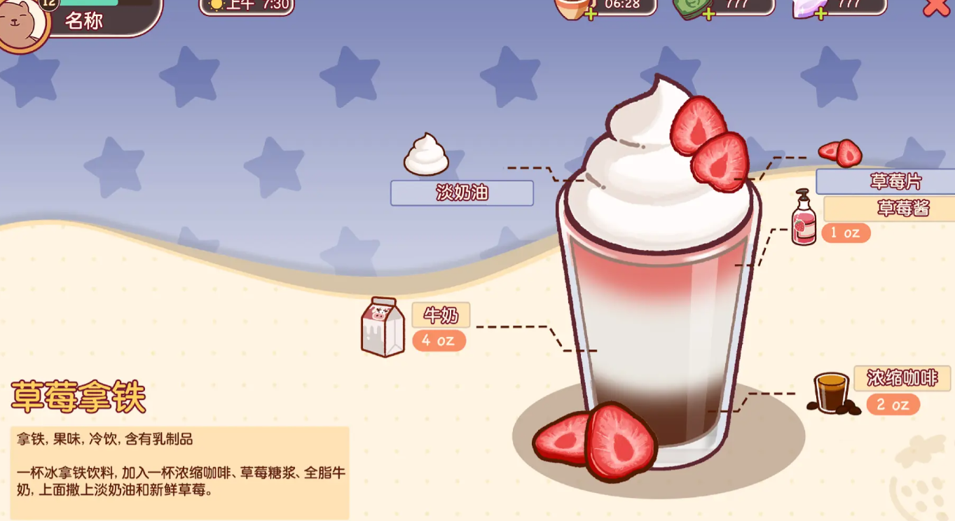 风味拿铁在游戏当中有三种,它们分别是草莓拿铁、香草拿铁、巧克力拿铁。