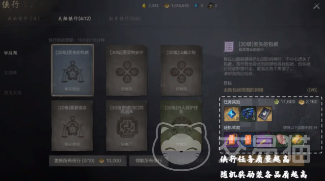 里面还有比较独特的侠行任务,完成这个任务之后能随机抽取一些装备,抽血的装备等级,是跟玩家完成的任务质量相挂钩的,任务质量越优秀,玩家所能获得的装备等级就会越高一些。