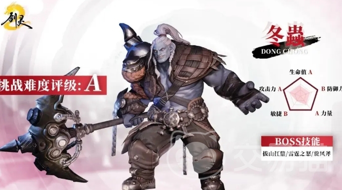 冬虫的真实强度偏高,建议玩家在挑战前,将自身攻击和防御属性尽量堆到400以上,玩家可提前服用秘药,短暂提升属性,为战斗增添胜算,冬虫的技能需要详细了解才能够更好的战斗,拔山扛鼎技能使用后冬虫将斧子举过头顶蓄力,此时其头顶会出现醒目的“危”字,同时地面出现三层黄圈,这一技能斧子砸地后会附带焰火伤害,玩家一旦中招,不仅会遭受一次性高额伤害,还会持续扣血。