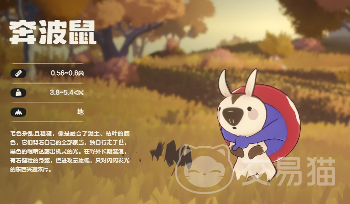 最后再推荐一个奔波鼠,奔波鼠是洛克王国中土系宠物口袋鼠的中级形态。它体型小巧,却活力满满,浑身覆盖着一层土黄色的绒毛,与土地的颜色相近,仿佛是大地的精灵,能轻松融入周边环境,其耳朵又大又尖,时刻警惕地竖着,不放过周围任何细微的动静,黑豆般的眼睛炯炯有神,透露出机灵与聪慧,一条细长的尾巴在身后摆动,帮助它在奔跑和跳跃时保持平衡。