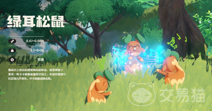 其次推荐绿耳松鼠,绿耳松鼠在洛克王国中是十分惹眼的存,它浑身覆盖着柔软的棕色毛发,摸起来顺滑无比,最为独特的是其两只耳朵,呈现出清新的绿色,犹如春天刚冒出的嫩芽,为它增添了一抹别样的生机,一条蓬松的大尾巴摇曳在身后,这尾巴不仅能帮助它在跳跃时保持平衡,看起来还十分可爱。绿耳松鼠的眼睛圆溜溜的,乌黑发亮,时刻闪烁着好奇的光芒,对周围的一切都充满探索的欲望。