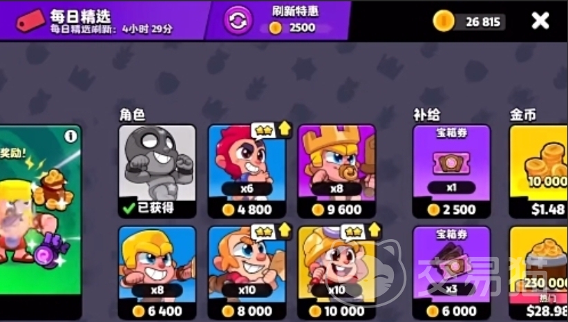 第二种方式就是玩家用金币或者宝石在游戏商店内购买角色了。这种方法就需要玩家在对局中努力胜利或者完成各种任务来积攒足够数量的金币。这种方法既需要时间又需要货币成本,但是速度很快,还可以购买自己真正需要的角色。