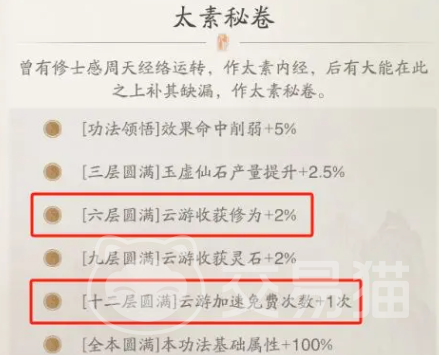 云游挂机:云游关卡的进度和挂机奖励会呈现正比,因此在长时间挂机之前,应该尽可能消耗资源来迅速的提升自身的境界,可以获得丰厚的奖励。每天可以保留加数的次数,等到新的历练进度时,然后再使用。