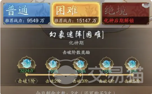 云游秘境:玩家可以去挑战高难度的秘境,此时就能获得修为,玩家在境界还有战斗力达标的情况下,就应该先挑战高难度的秘境。在突破大境界之后,还会有两次免费的挑战次数,会直接刷新。所以在突破大境界之前,就需要把免费的次数全部的用完,充分利用这一个福利就可以迅速的提升修为。