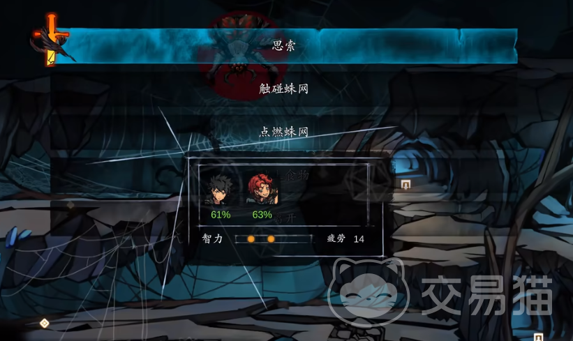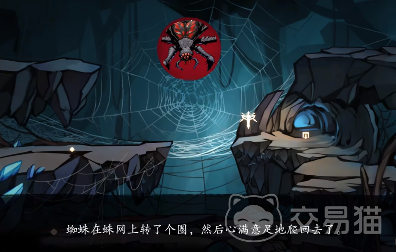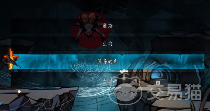 击败前面这几个小怪之后,玩家和安迪就会遇到蜘蛛boss,这个boss的战斗能力非常优秀,为了不吸引他的注意,需要选择食物转移注意力,可以选择直接把诡异的肉献给蜘蛛,这时候蜘蛛就会暂时退回到洞穴中,玩家还可以从蜘蛛这里获得一个匕首,可以选择装配到安迪身上,紧接着剧情的指引,就可以进入到一个全新的空间中挑战。