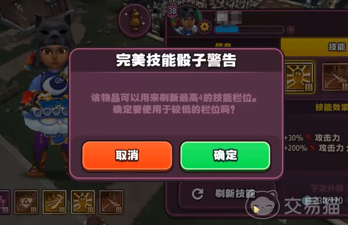 在刷新技能时,第二和第三技能栏所需用到的道具都为基础技能骰子,而开了第四、第五技能栏的英雄,在进行这两个技能栏位刷新时,需用到完美技能骰子。虽说后者也能替代前者的作用,但由于后者很难获取,所以不建议这么做。此外,玩家也可选择使用钻石来替代骰子进行技能的刷取。