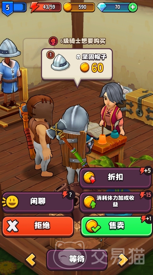 此外,在进行经营时,各位还能通过耗费体力来提高装备的售价,让同一件商品赚更多的钱,但该方法最好只用在品质好的装备上,以实现收益最大化。体力不足时,也可给客人折扣来恢复,但要切记折扣只用在白板装备上,避免自己亏太多钱。