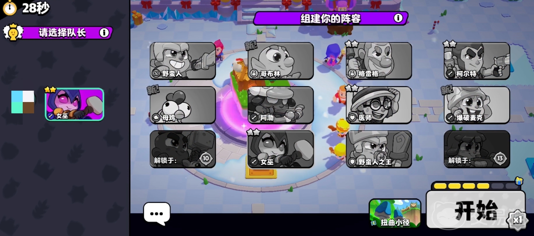 能召唤骷髅的女巫主要能依靠自身人多,从而玩出有意思的偷宝石流派,既在后期宝石出现时利用数量众多的小骷髅来卡主别人,让自己能吸到更多的宝石。阵容搭配时选女巫为队长,前期拿哥布林、格雷格发育,有母鸡上母鸡,然后再带上麦克、医师就能成型,其它角色看情况配。